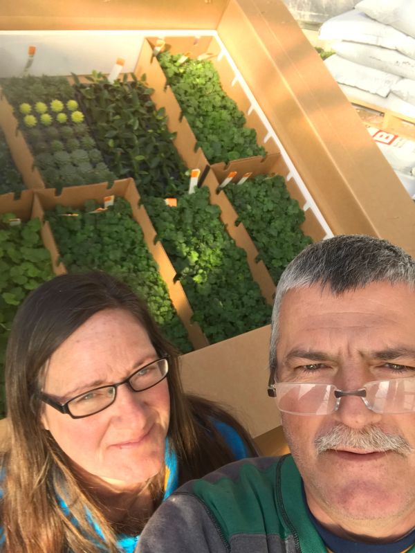 In 1991 my wife and I bought land in Shelton, Nebraska and on this land was a 20 by 20 greenhouse. Located close to the UP railroad tracks, all the glass had vibrated and fallen from the building. We covered it with plastic and said, "Hey let's try growing some plants and selling them". The spring of 1991 we sold $1547 worth of plants and thought we had the world by the ass.